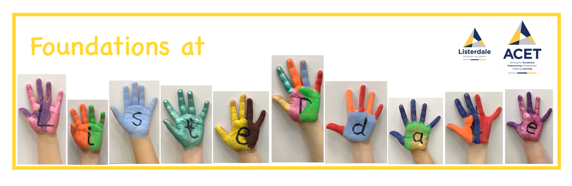 At Listerdale Primary Academy, the EYFS includes Foundation stage 1 (FS1 or Nursery) and Foundation Stage 2 (FS2 or Reception).