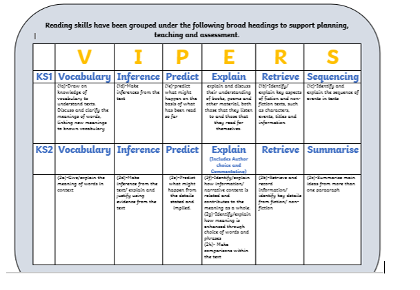 KS2-Vocabulary, Inference, Prediction, Explain (Authors’ choice and Commentating), Retrieve, Summarise